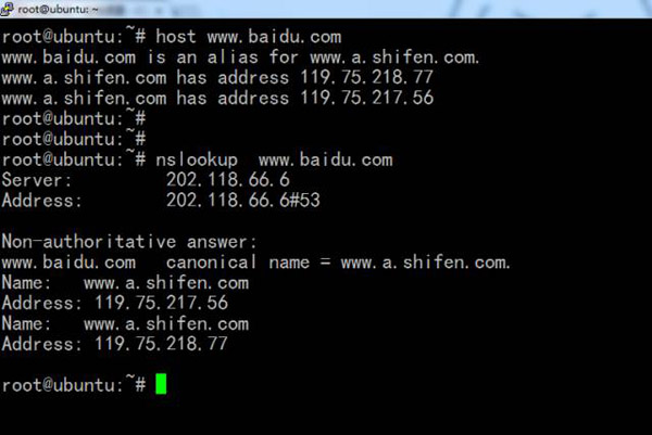 当执行host 时,它会列出某个域名的所有IP 地址;nslookup 是一个类似于host 的命令,它用于查询DNS 相关的细节信息以及名字解析。