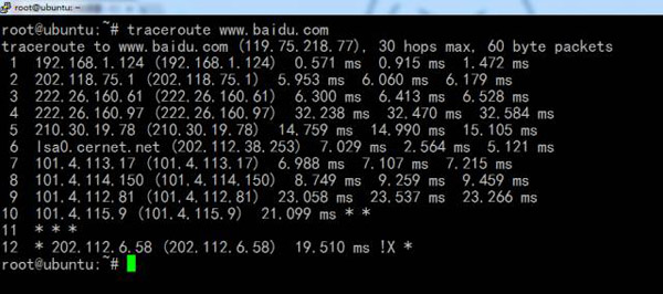 由此可见,到达百度需要经过12跳。