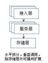 系统水平拆分成三层:接入层,服务层和数据存储层。将有状态和无状态的划分开来,接入层和服务层设计成无状态的,存储层是有状态的。无状态层的服务可以平行扩展,请求落到哪台服务器都没有关系。平行扩展也有利于系统容量的扩充,快速扩容应对突然爆发流量的冲击。