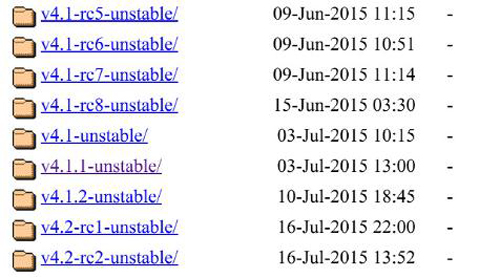 现在,访问内核PPA网页,一直滚动到底部。列表最下面可能含有一些发行候选版版本(你可以在名称中看到“rc”字样),但是它们的正上方应该是最新的稳定版。点击它,你会看到几个选项。你需要下载3个文件,并保存到各自的文件夹中(如果你喜欢的话,可以放在Downloads文件夹中),那样它们与其他文件隔离开来: