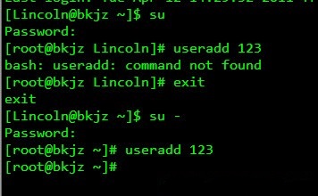 我首先是用su命令切换到root身份的,但是运行useradd时,出现错误:bash: useradd: command not found。google了一下,原因是在这个用su命令切换过来的root用户上。