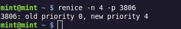 上述例子中,用户为‘mint’的所有进程优先值变为‘-3’。