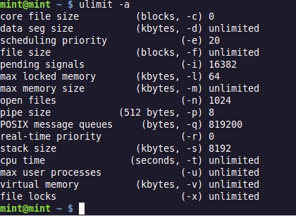 浏览ulimit man页面获取更多选项。
