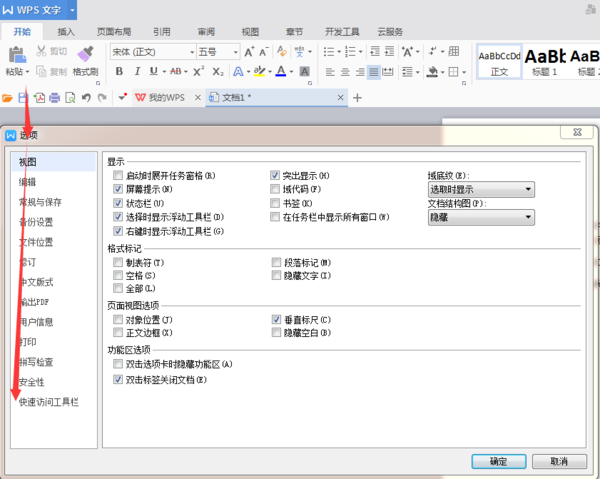 2、进入“Word选项”窗口后,切换到“快速访问工具栏”如图提示