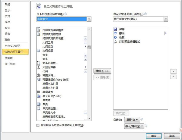 2、下拉菜单里有所有命令,选择所有命令,里面有个打印设置,添加到右边窗口自定义快速访问工具栏,确定。3、回到打印预览,上边的工具栏里有个预览,把显示标尺打上勾,把放大镜去掉。Word打印预览您可以会遇到的问题:答:因为你选择的打印机型号不是适应纸张的大小,可以在开始-设置-控制面板-打印机中安装支持纸张大小的打印机。答:菜单栏文件打印勾选打印到文件(在右侧)确定出现打印到文件对话框文件名:输入文件名确定生成一个.prn文件修改后缀为.jpg文件。这样Word文档就另存为一个.jpg图片文件了。Word制作表格时可能会遇到的问题:答:在你的单元格中输入你要输入的文字,然后单击【插入】【图片】,双击图片,选择版式,在版式中选择衬于文字下方即可。答:表格工具栏最左边,有一个小画笔,旁边还有一个小橡皮。