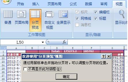 首先点击视图—分页预览,自动提示出可以调整分页符的距离。