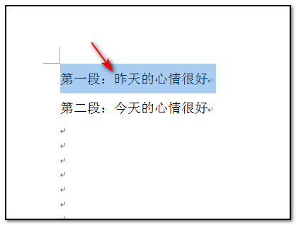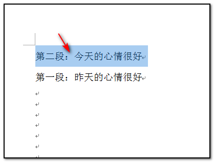 3、编辑好以后,先选中需要互换的文字内容。比如“第一段”和“第二行”需要相互交换,选中“第二段”的文字内容;