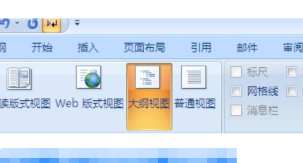 3.或者将光标定位在第一段中,单击视图-----大纲视图按钮;