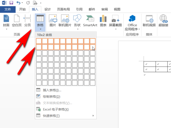 2、选择菜单栏中的插入工具,在插入工具下选择插入表格,这里我们插入两行表格用于演示如何在Word中使两行交换位置的操作。