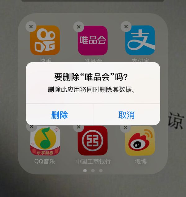 点击要删除软件左上角出现的黑色的叉号出现确认删除的兑换框,点击【删除】