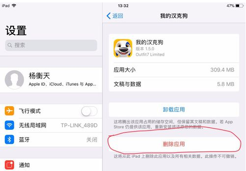 删除应用程序后,此应用程序仍然会显示在ipad屏幕上,重启一下ipad即可清掉。