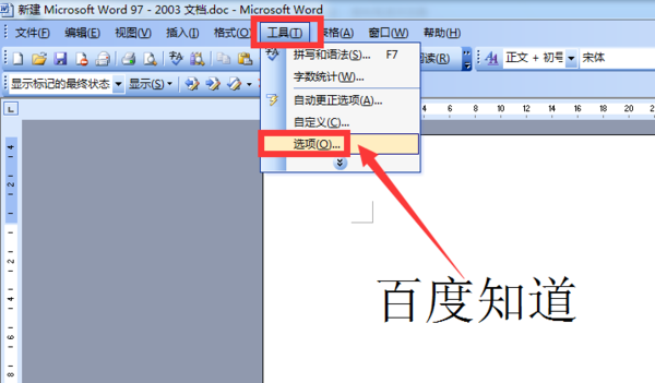 打开word文档,点击“工具”,在下拉列表里点击“选项”;