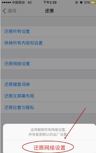 注:还原网络设置不会导致手机其他数据丢失,但是需要重新输入wifi密码。