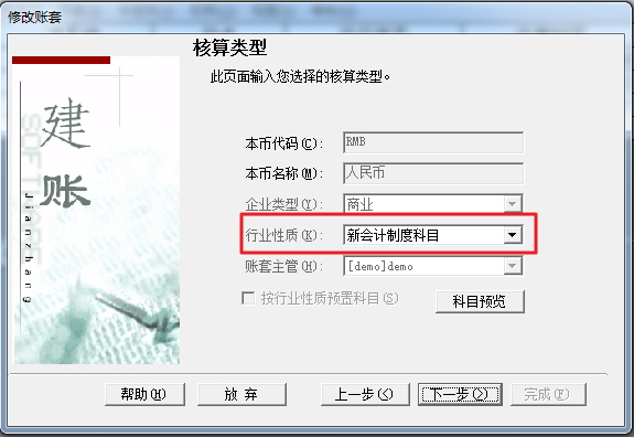 1、查看行业性质:打开“系统管理”使用账套主管的身份登录。选择你要建立报表的账套,登录到系统管理之后,点击账套》修改,一直下一步知道找到“核算类型”界面,记住“行业性质”的类型。如图所示: