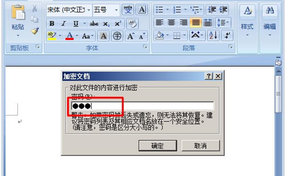②在弹出的“加密文档”对话框中输入密码,然后确认密码即可。