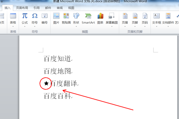word中如何在横杠里加入五角星,就是文件哪一类的 两边是横杠 中间那个星星怎么加进去