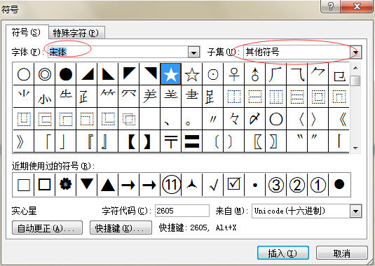 WORD文档里的符号(五角星符号)是怎么弄出来的呢?