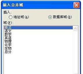 接着将光标定位到表1第二行“姓名”下面的单元格中,然后单击“下一步:撰写信函”按钮,在“撰写信函”列表中点击“其他项目”按钮,打开“插入合并域”对话框,如图3所示。点击选择“数据库域”单项按钮,然后在下面的“域”列表中选中“姓名”,接着点击“插入”按钮(或者双击)将Excel表格中姓名字段插入Word表格中,这时表1第二行第一个单元格中将显示“姓名”字样,我们可以像普通文字一样进行字体、颜色、大小等的设置。最后,用同样的方法为表1中其它单元格建立关联。