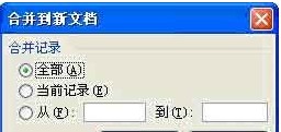 预览无误后,点击“下一步:完成合并”按钮,完成邮件的合并操作。如果需要打印,连接好打印机后,点击“合并”列表中的“打印”按钮,弹出“合并到打印机”对话框,如图4所示,选择“全部”、“当前记录”或“从某个记录到某个记录”中的一个选项,然后点击“确定”按钮进行打印。