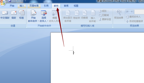 1、打开正在使用的word文档(这里以空文档作为示例,实际运用时EXCEL文档插入内容和位置以实际需要为准。)找到上部菜单栏中的邮件选项,点击。