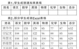 1、学生成绩通知单中的表格部分如表1所示,表中第一行中的内容是固定不变的,而每位学生的相关内容是各不相同的,需要从Excel表格中调用。Excel表格中的部分学生数据信息如表2所示,下面是实现的具体方法和步骤。