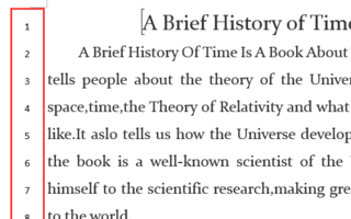 点击两次确定(译者注:完成设置),现在行号已经显示在文档的左边界外了。