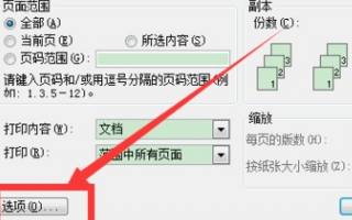 5、然后点击左下角【选项】。在下一个界面中【双面打印选项】处,纸张正面打印、纸张反面打印前根据情况打勾。