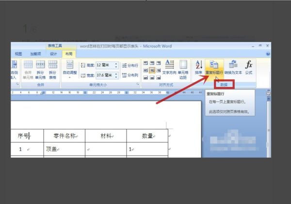 5、选中“在各页顶端以标题行形式重复出现”选项,单击“确定”按钮即可。