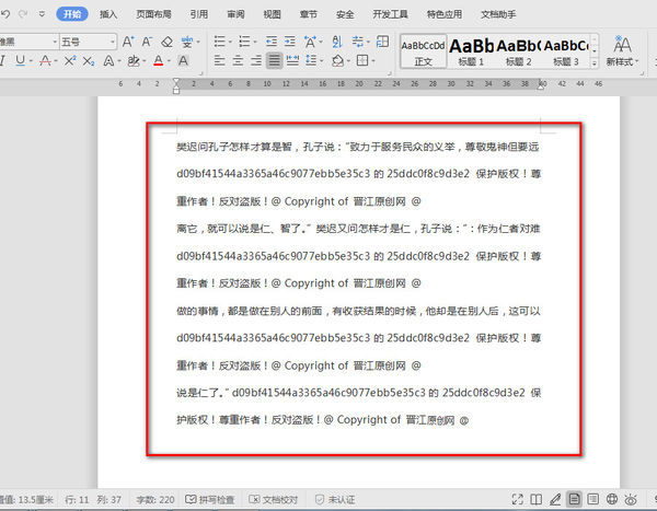 6.点击 确定 按钮后关闭窗口,回到文档正文查看,已经成功删除文档重复段落。