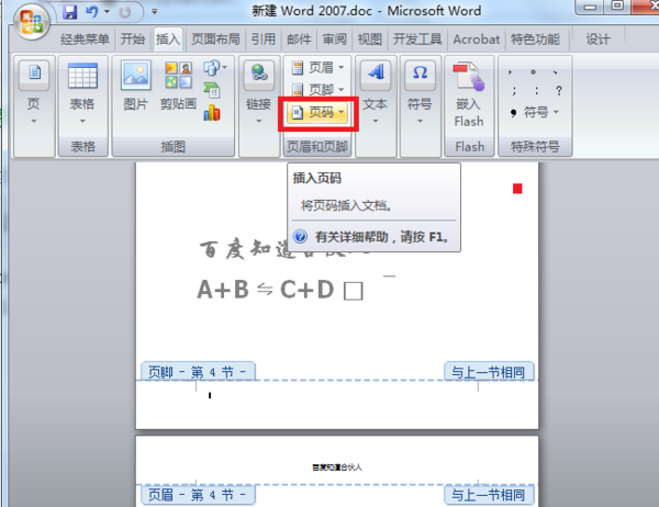 4、点“插入页码”(按钮是“纸上一个#”)。