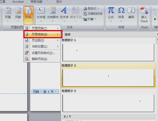 在word中,如何从第五页开始设置页码