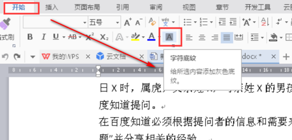 2、【字符底纹】只可以为文字添加灰色的底纹,没有多余的颜色可供选择,如果是有打印(黑白)需要,这是比较直接的方法。