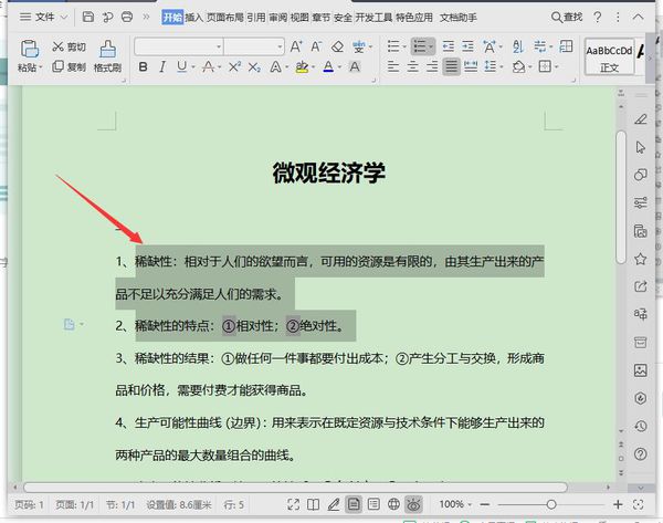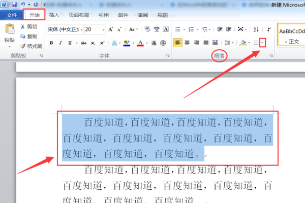 1、打开需要设置的相关word文档,选中需要添加蓝色底纹的段落,在“开始”选项卡