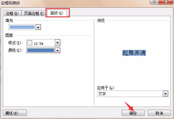 4、接下来在弹出的对话框中选择“底纹”,然后根据自己的需要设置即可,最后点击“确定”就可以了。
