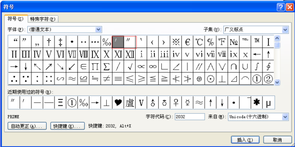 在Word中,输入一撇、两撇,例如:M′、M″的输入方法: