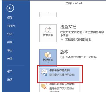 3.进入信息面板后,选择“版本”里的“恢复未保存的文档”。