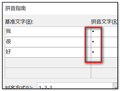 4、点击进入拼音指南命令以后,在拼音文字栏里直接粘贴“•”符号;