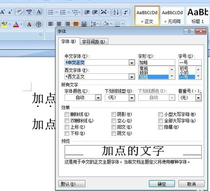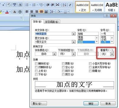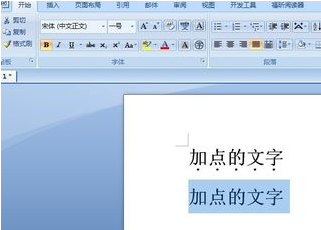 5、设置并确定好以后,此时文字的上方已经成功添加黑点的符号。