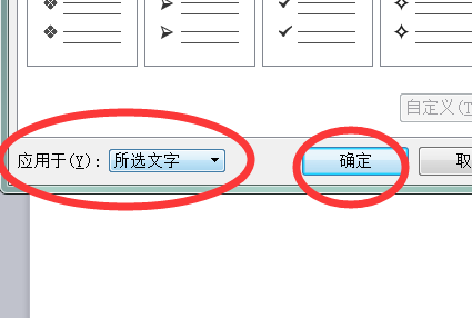 4、然后将“应用于”选择为“所选文字”,点击确定。