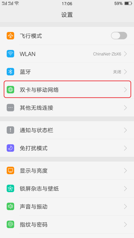 二、 进入设置以后,选择“双卡与移动网络”选项。