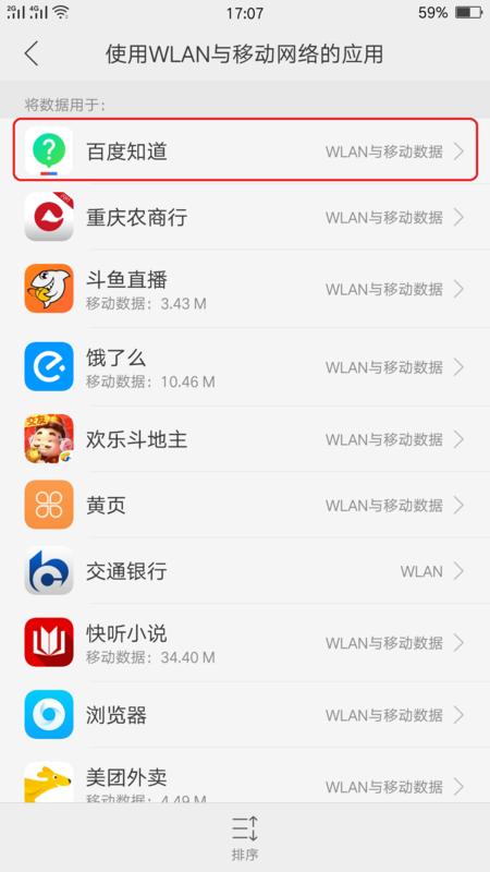 四、进入以后找到要设置的应用,这里以“百度知道”为例,点击进入。