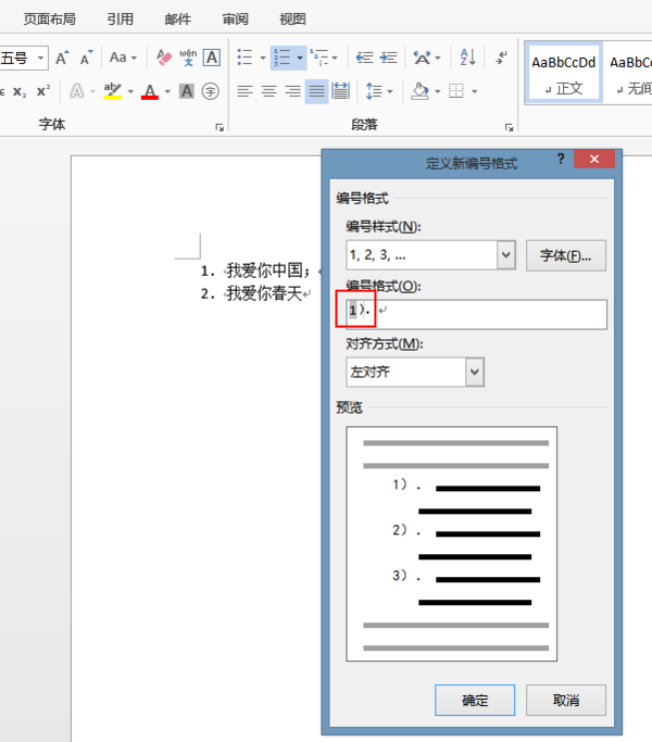 更改编号格式,增加),就可以变了。