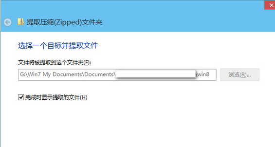 这时会弹出“提取压缩(zipped)文件夹”窗口。如图: