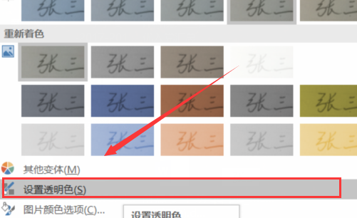 6、选择“设置透明色”。