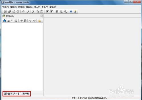 2.吉吉写作有三个部分,创作窗口简洁明了,资料窗口可以整理写手们种类繁杂的创作素材,还有故事树,创作之前得先写个大纲,相对来说使用起来还行