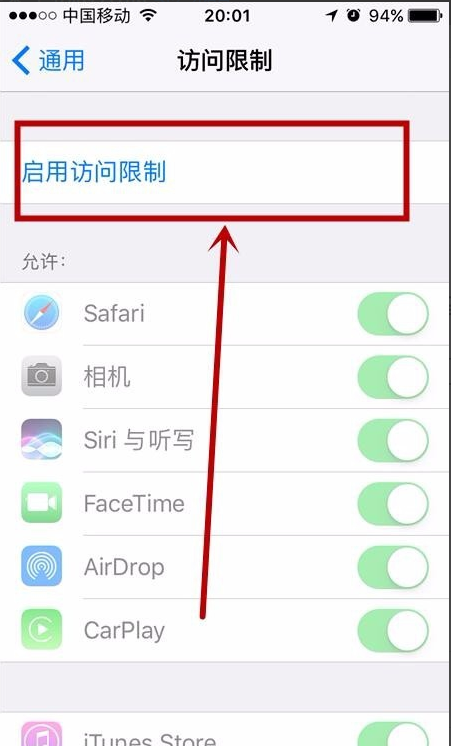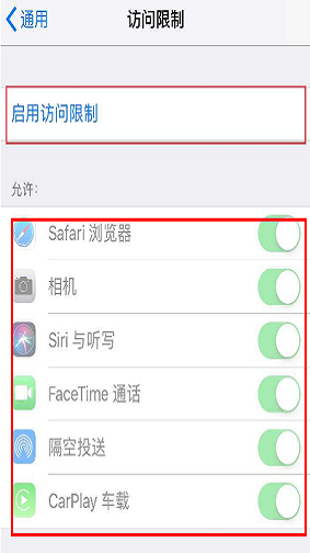 3、点击访问限制,再点击启用访问限制,开启访问限制设置密码。