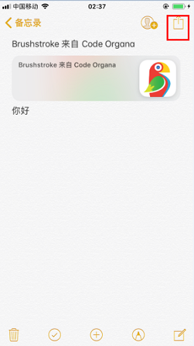 1、打开苹果手机备忘录,点击某一条便签,点击右上角的“分享”图标。