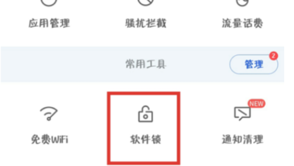 3、在“百度手机卫士”app首页上拉菜单栏,点击选择"软件锁"选项。