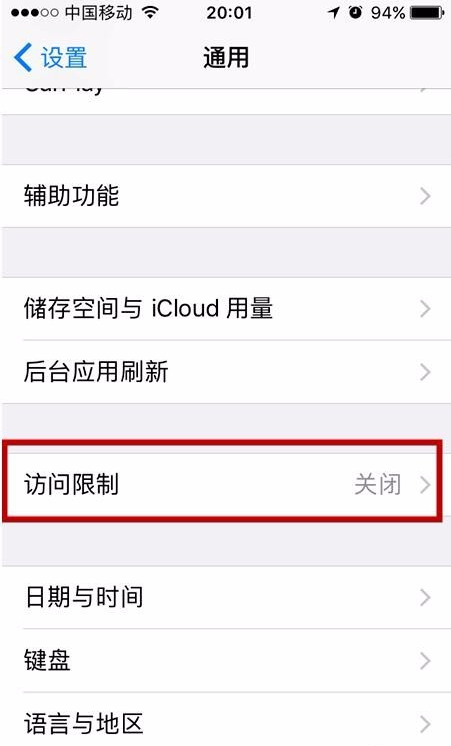 三、进入通用以后,找到“访问限制”一项,点击进入。