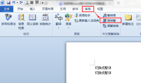 2013 菜单-审阅 中的繁简字转换的工具按钮。